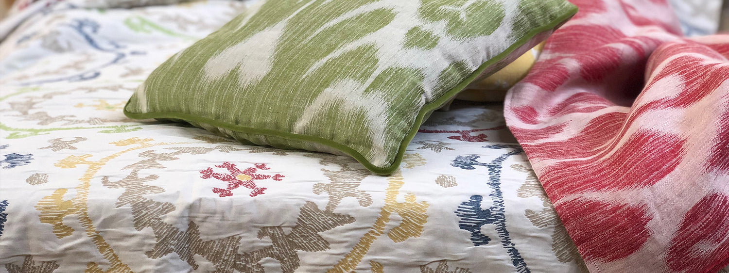 Il tessuto Jacquard ha un disegno intrinseco, frutto dell’intreccio dei fili di trama ed ordito. Grazie a questa tecnica è possibile realizzare disegni anche molto complessi e colorati.