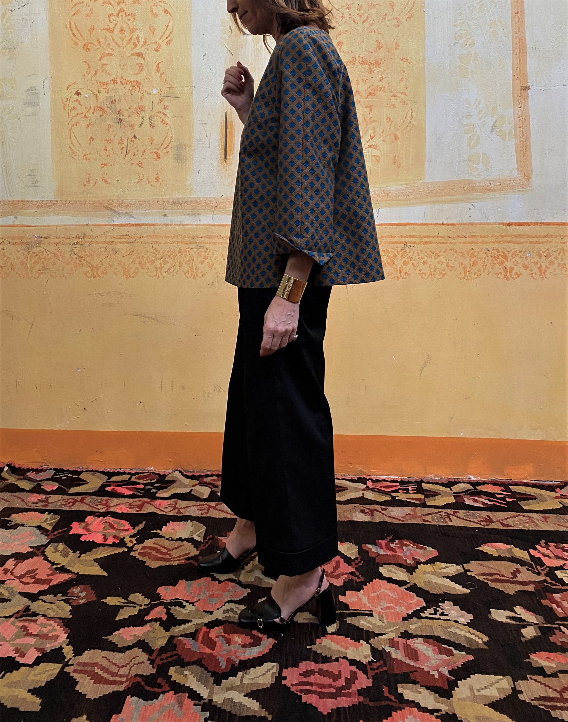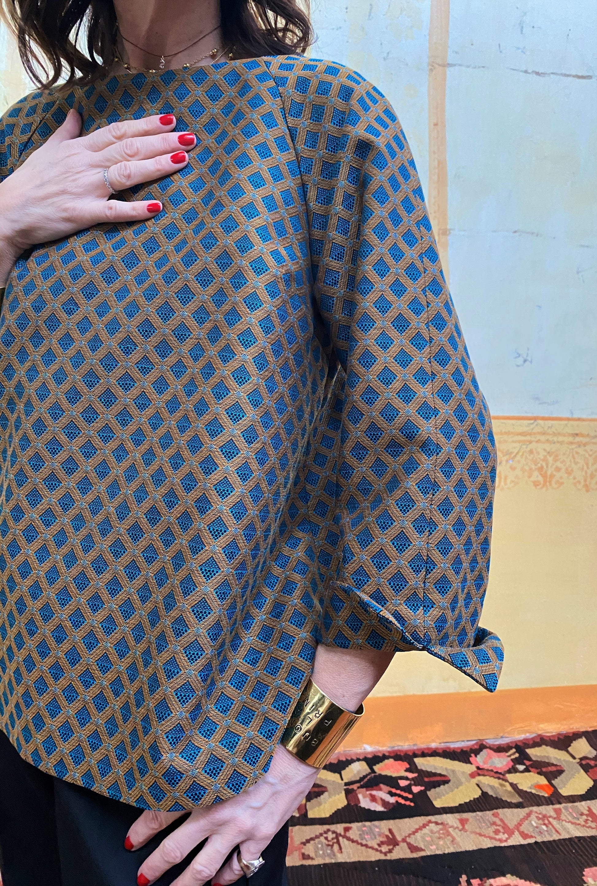 Casacca in tessuto jacquard di cotone con scollo a barchetta
