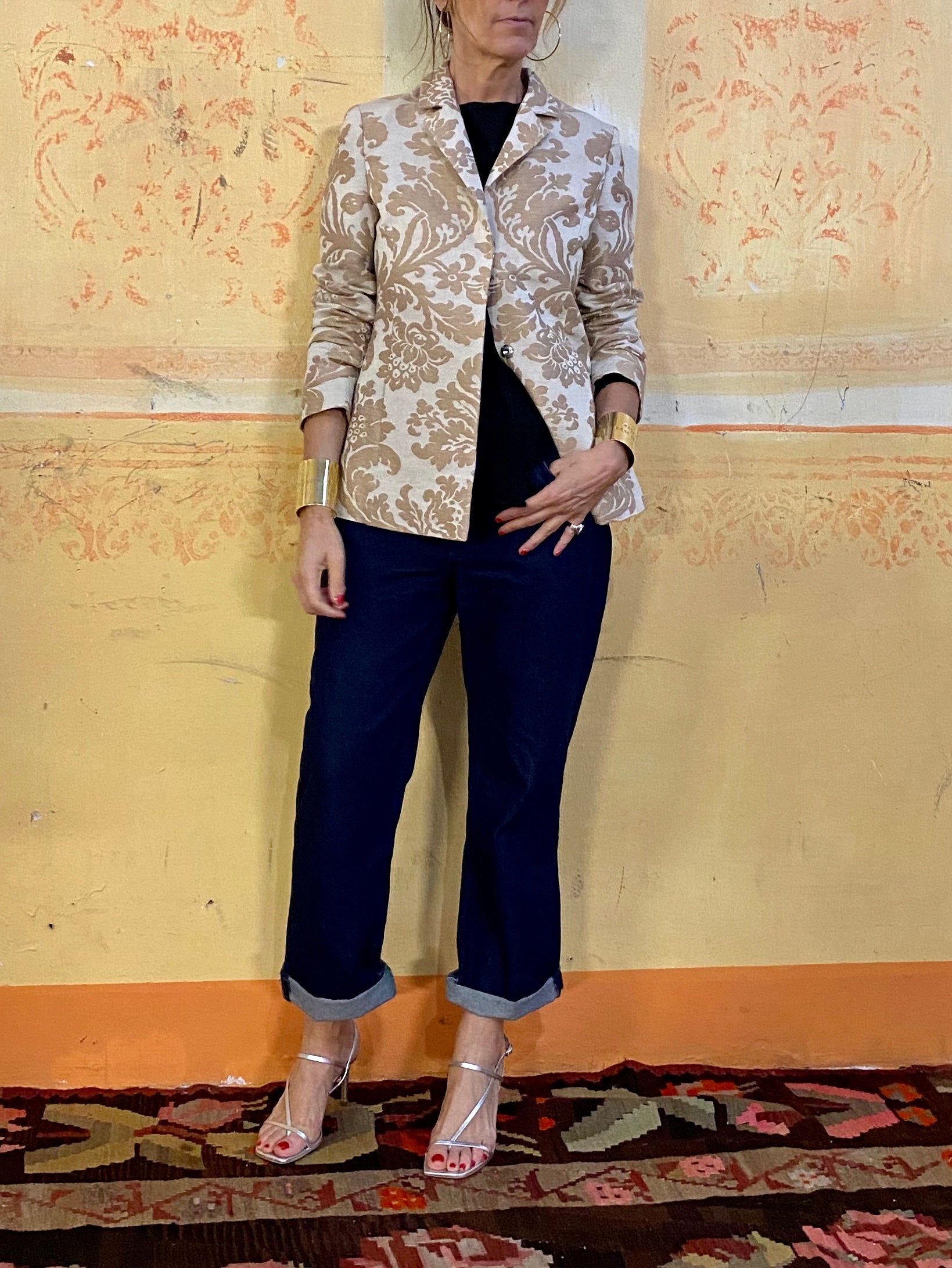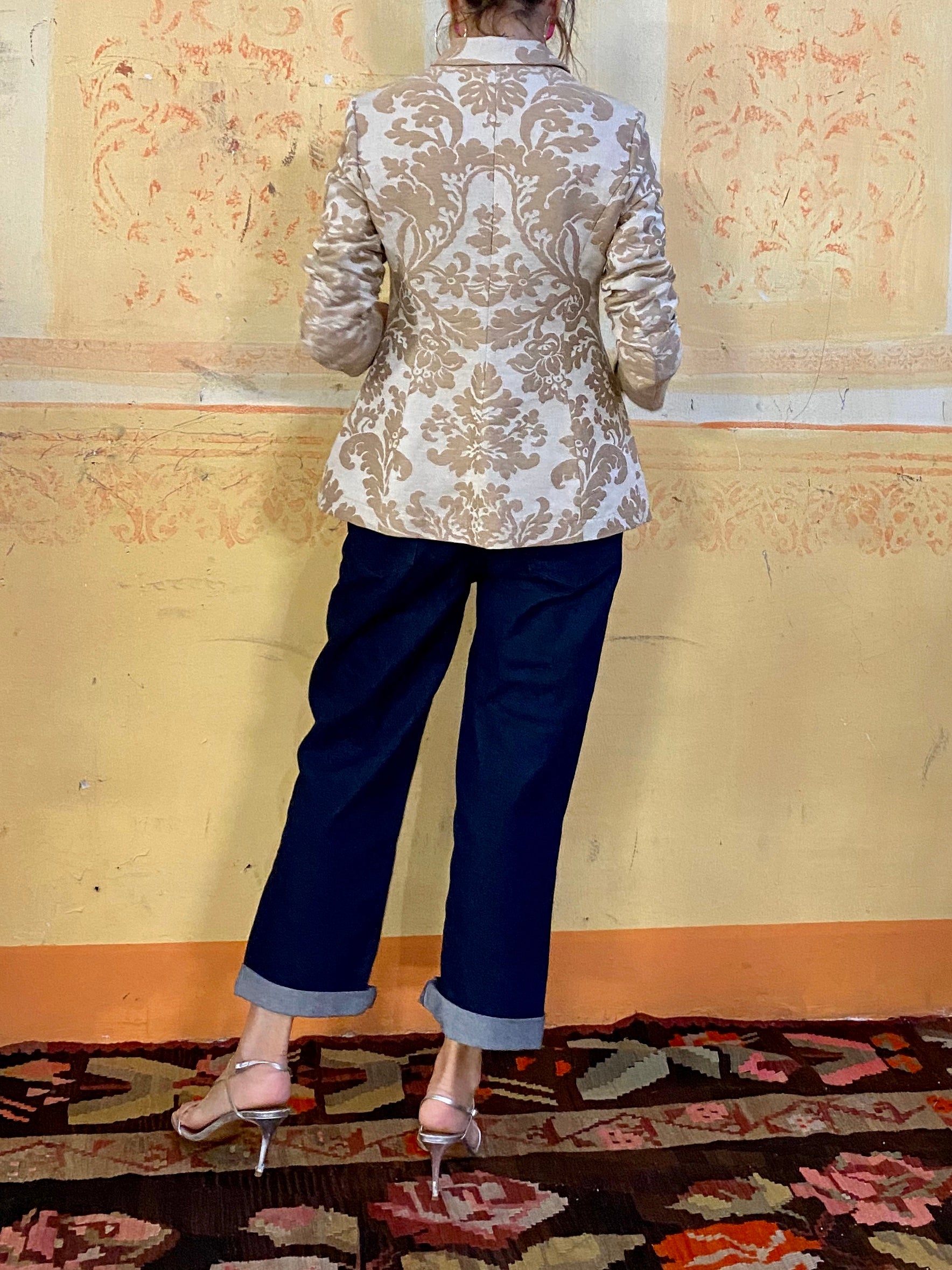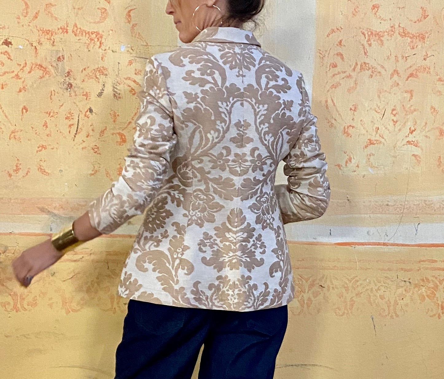 Giacca classica in tessuto jacquard in cotone con tasche laterali.