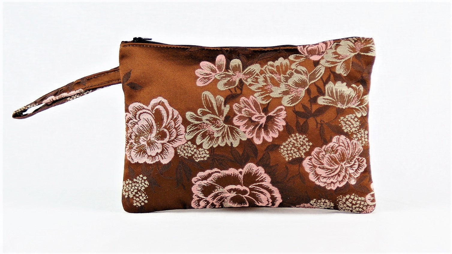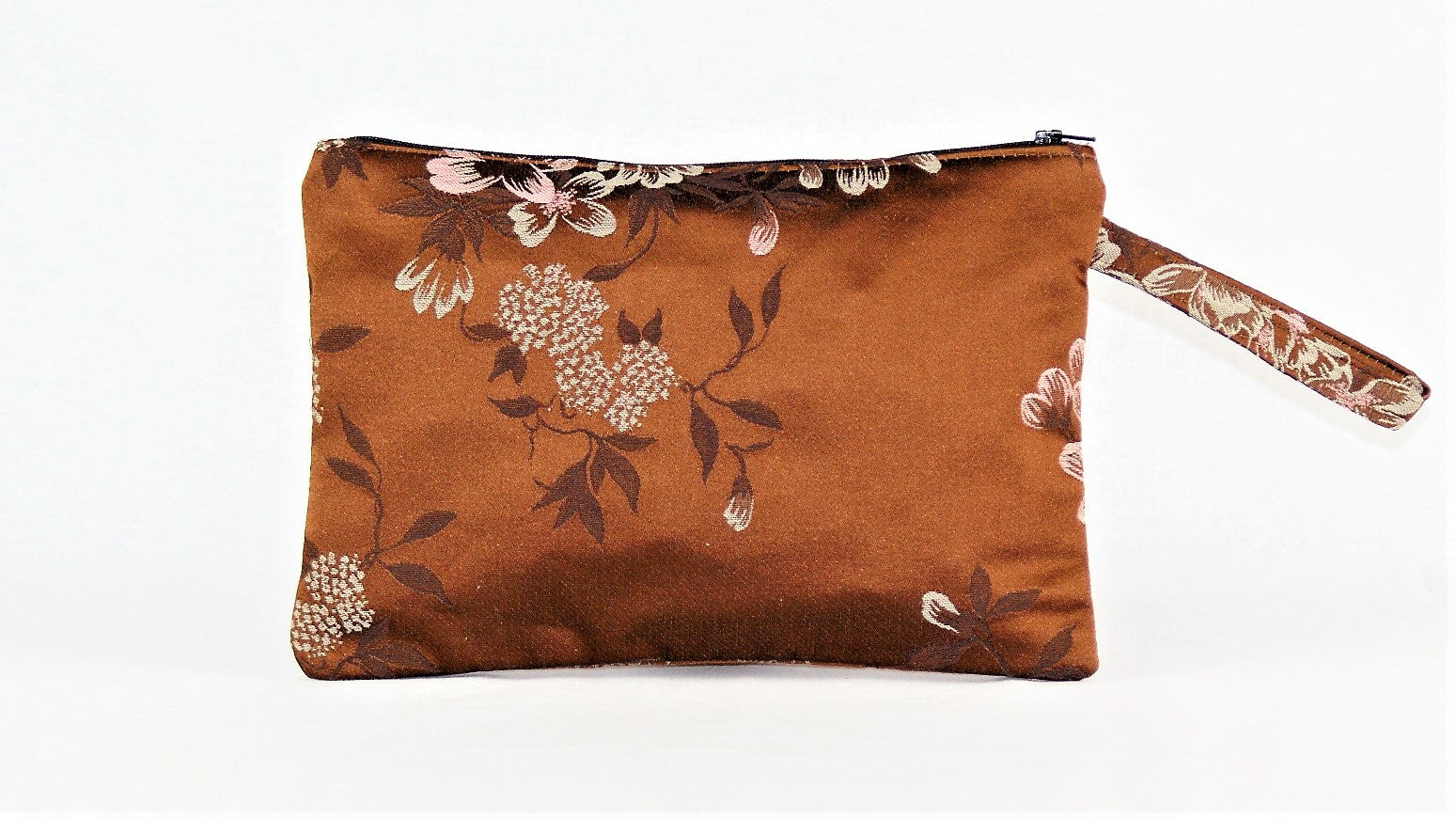 Pochette in tessuto jacquard seta e cotone con cerniera.